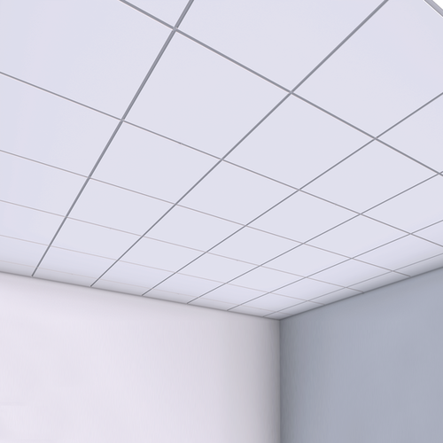 Providing & fixing Thermofriz Acoustic 'Plain Metal Tile' made from Modified Polyester Coated Galvanized Steel i.e. Z 120gm Zinc coating mass total of both sides & 275Mpa yield strength, on the exposed side & primer coating on back, coil coated on both the sides in standard shade with square or bevelled edges and flanges, produced on advanced equipment, which includes several leveling stages in the manufacturing process. Exposed side of tile shall have 20 micron coil coated polyester finish for steel and 5micron back coat of Alkyd primer. All tiles to be installed on a standard 600 x 600mm module 24mm table exposed metal grid and are precision made to within ± 0.25mm